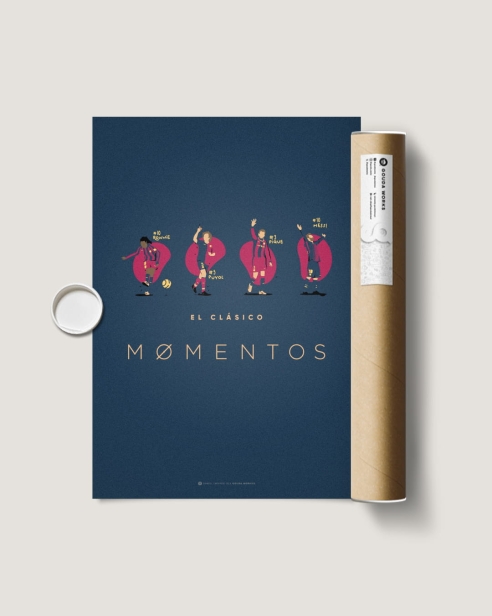 Drugi projekt z Momentami FCB. Wydanie z Klasykiem w tle, które przyozdabia puby, salony i biura fanów Barcy. Cztery klatki mówiące o pięknych starciach z Realem. Pomnikowy Ronaldinho, Puyol dzierżący opaskę, piątka Pique oraz cieszynka Messiego.